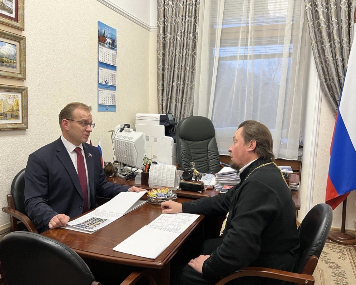 Руководитель епархиального центра иппотерапии «Целебный Ессентуки» иерей Сергий Тростинский встретился в Москве с членом Комитета Государственной Думы РФ по охране здоровья Михаилом Кизеевым.