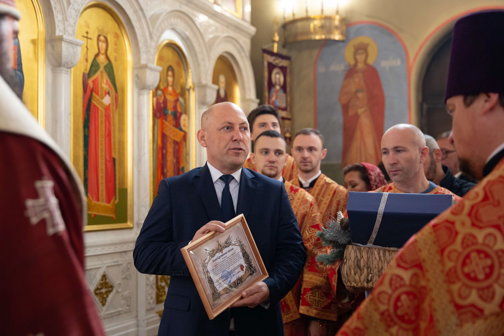 Председатель Думы Георгиевского муниципального округа Александр Стрельников передал архиепископу Феофилакту Благодарственное письмо от руководства Луганского республиканского госпиталя ветеранов войны. Врачи благодарят Владыку за духовное окормление и помощь лечебному заведению.